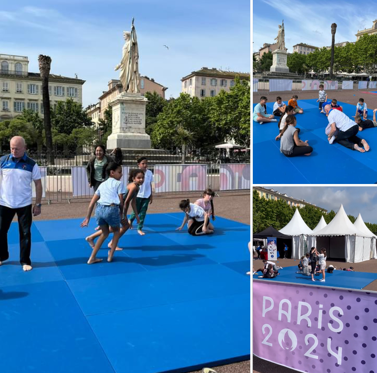 Le passage de la flamme olympique aura permis à plusieurs élèves de l’ecole CHARPAK d’avoir une initiation au Judo tout près de la statue de Napoléon 👍🥋 Notre DT, Maurice MASSONI, a eu chaud 😎 Cet après midi ce sera au tour de l’école DESANTI.