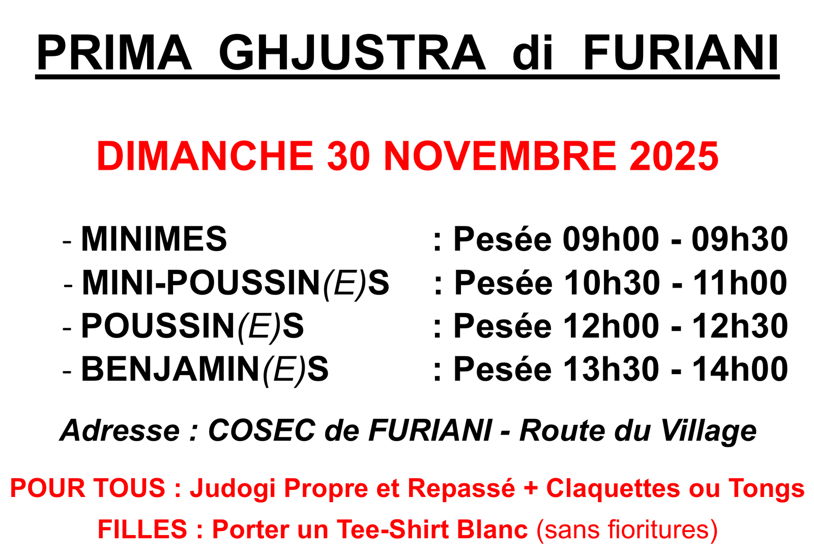 Heures de convocation pour le Tournoi du club Cismonte de Furiani. Inutile de se présenter trop tôt !!!