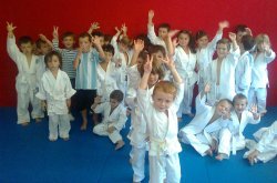Malgré l'arrêt des essais pour les enfants nés en 2006 le cours EVEIL JUDO était bondé ce matin; l'entrée du club ressemblait à une ruche en activité et nous n'avons pas eu assez de judogi a preter. Plus de 25 oisillons dont une quinzaine déjà inscrits se sont affairé autour de Yolaine toujours aussi disponible et félicitée par l'ensemble des parents. Elle a même été surprise lorsqu'un de ses anciens élèves lui a demandé s'il était possible d'inscrire son fils de 2 ans... A partir de mercredi prochain tous les "essais" devront avoir fait le choix de s'inscrire ou de prospecter un autre sport afin que nous puissions établir les listes définitives de chaque cours. Ce sont près de 125 enfants qui se sont succédé tout au long de SA journée de 5 cours et ce n'était pas la même ambiance en fin de soirée pour les minimes débutants qui n'étaient que 7 sur les tatamis. Dur, dur pour Seb...