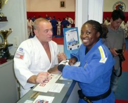 Grosse animation mardi vers 18h30 devant et dans le dojo du club doyen avec l'arrivée de Gevrise EMANE l'une des 3 championnes du monde françaises sacrées à Paris fin août, un peu avant Teddy RINNER. C'est dans le cadre de la préparation de l'équipe de France de la Police, dont le DTN est notre ancien licencié Dominique GIUSEPPI, que la charmante et très disponible Gevrise (qui est douanière) a été invitée à passer quelques jours de vacances dans la région bastiaise. Entre sorties en montagne, vélo et kayak le judo est bien sur au programme de leurs activités et c'est tout naturellement que Regis, l'entraineur du groupe, nous a demandé s'il était possible de partager nos entraînements durant la semaine. Ce soir l'élite des judokas policiers seront à nouveau au JCB et tous les compétiteurs de la région sont invités à participer. Nous reviendrons dans une autre "new" sur les à cotés de la viste de Gevrise...