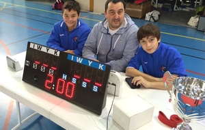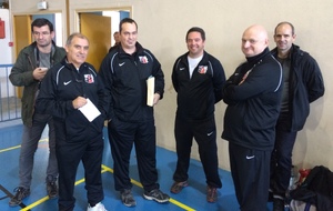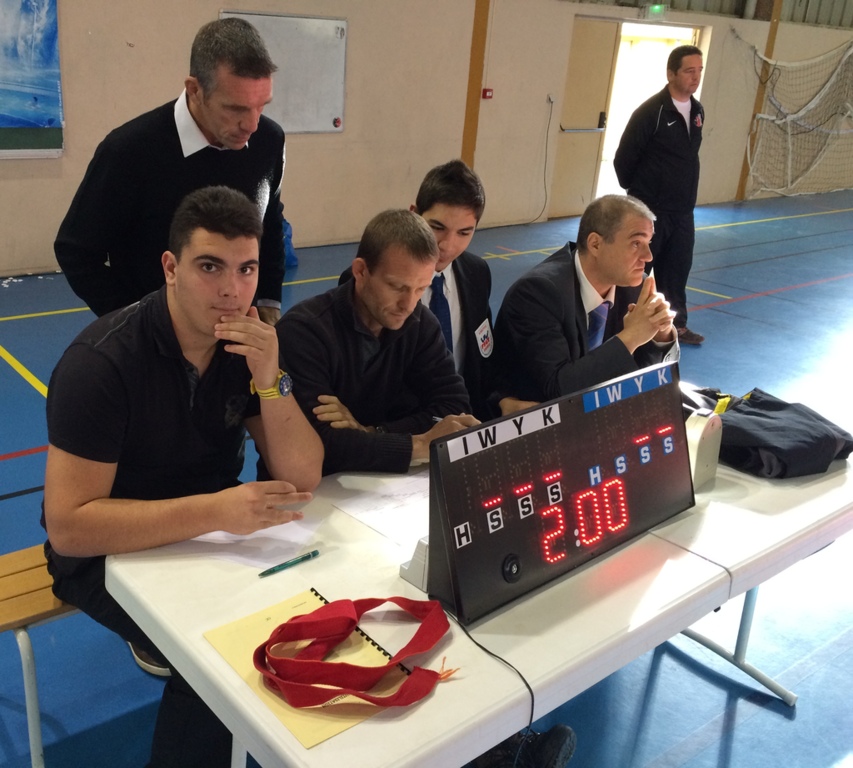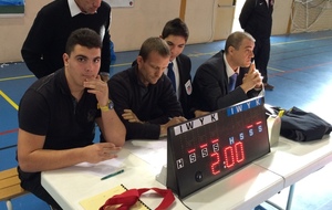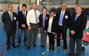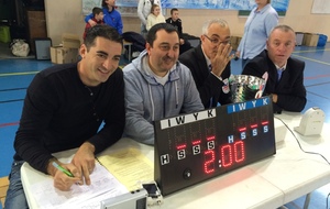 Thierry GESLIN, le responsable de l'arbitrage, donnait les dernières consignes aux arbitres (Mrs. MASSONI, VILLANUEVA, GRAVINI, HALUPKA, NICOLAI et Mlles BLANCHARD, IOZZIA) tandis que Sébastien LESIEUR dirigeait l'échauffement collectif des benjamins et benjamines et que les commissaires sportifs installaient le matériel.
