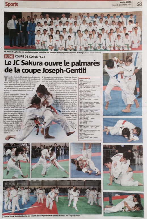 Notons que cette rencontre servait également de support à la coupe Joseph GENTILI (offerte par le JCB) qui récompensera chaque année le club ayant totalisé le plus de victoires individuelles et que c'est le J.C. SAKURA qui l'a remporté avec 12 victoires devant le J.C. BASTIAIS (10) et le KODOKAN CORSE (5). Cette coupe sera remise en jeu la saison prochaine pour perpétuer le souvenir du fondateur du judo insulaire.