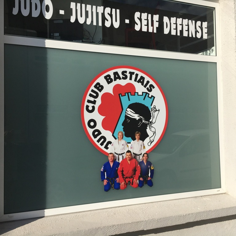 Durant les vacances BASTIA PUBLICITE a collé de nouveaux visuels sur la façade du dojo.