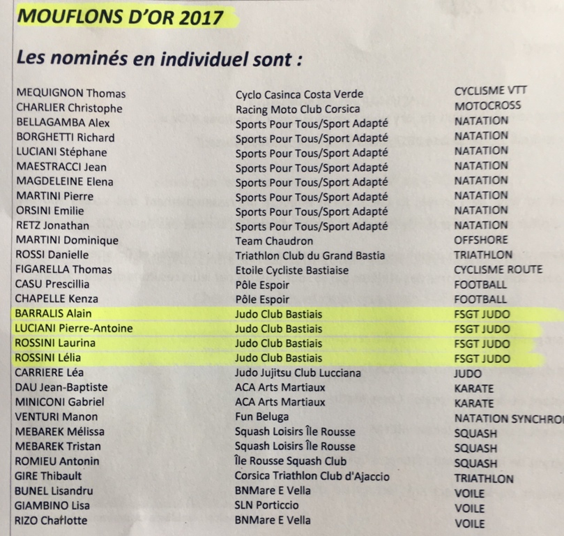 Nos 2 champions et nos 2 championnes de France sont dans la liste des nominés pour les Mouflons d’Or 2017 Félicitations et bonne chance ...