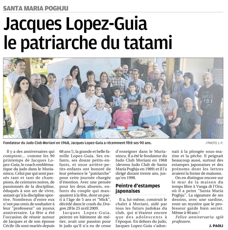 Le JCB a, forcément, une pensée émue en apprenant que M. Jacques LOPEZ-GUIA, le dernier des pionniers du judo insulaire vient de fêter ses 90 ans.