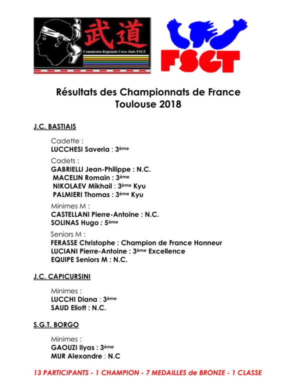 RÉSULTATS COMITE CORSE aux CHAMPIONNATS de FRANCE FSGT