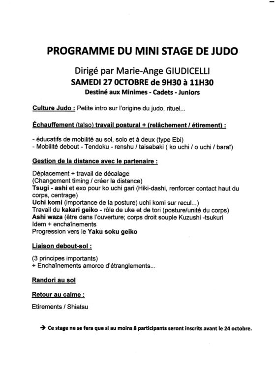 L’excellent programme concocté par notre responsable Culture Judo, Marie-Ange GIUDICELLI, reste inchangé.