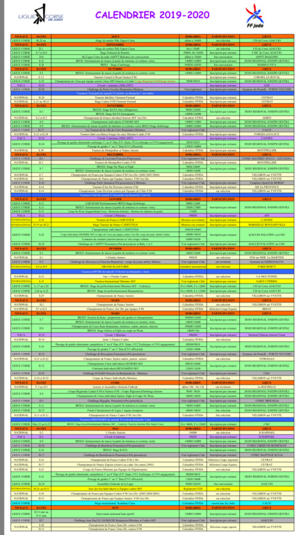 CALENDRIER LIGUE FFJ:
