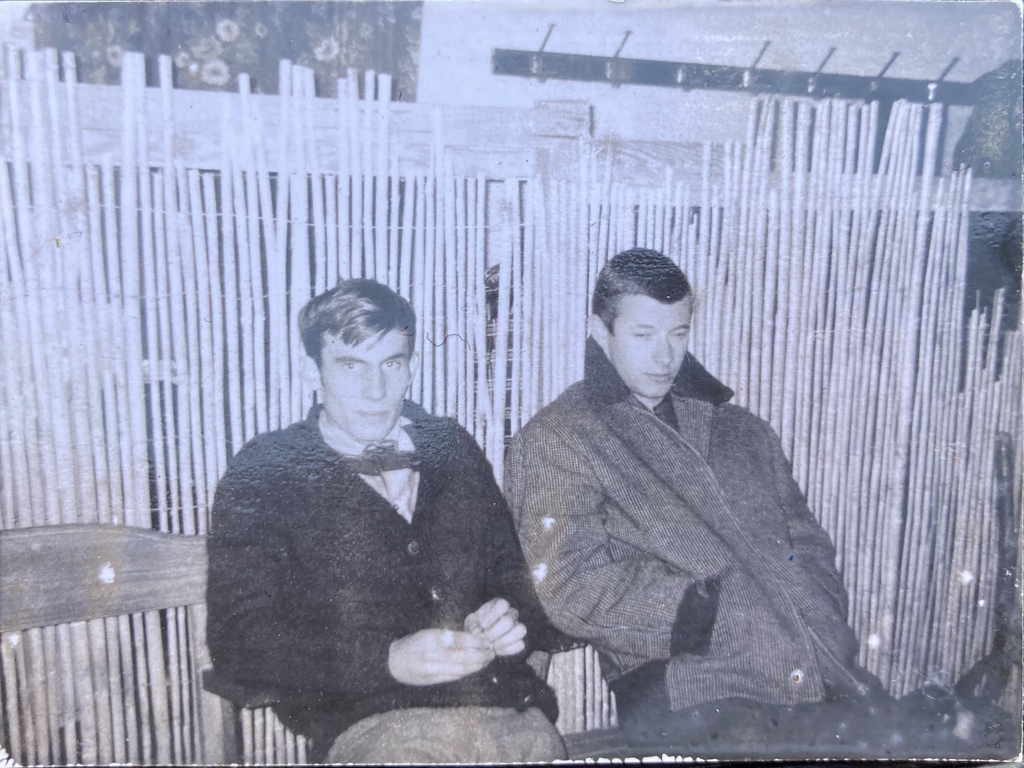 Claude MATTEI et Patrick MORIN devant notre vestiaire ‘’isolé’’ de la salle par des canisses.
