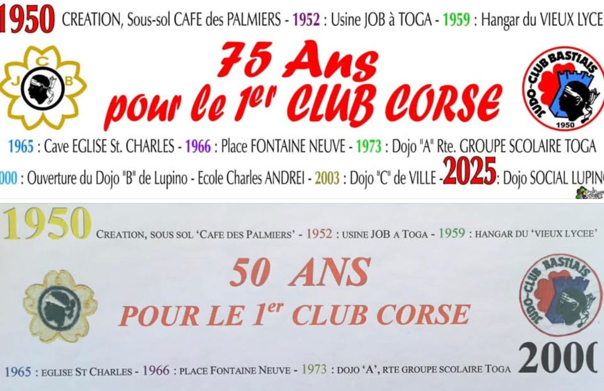 La magnifique banderole réalisée et offerte par Nicolas GIOVANNETTI, notre jujitsuka de BASTIA PUBLICITÉ, et le modèle que j’avais créé pour celle de nos 50 ans (qui avait été réalisée par son père) 🥋