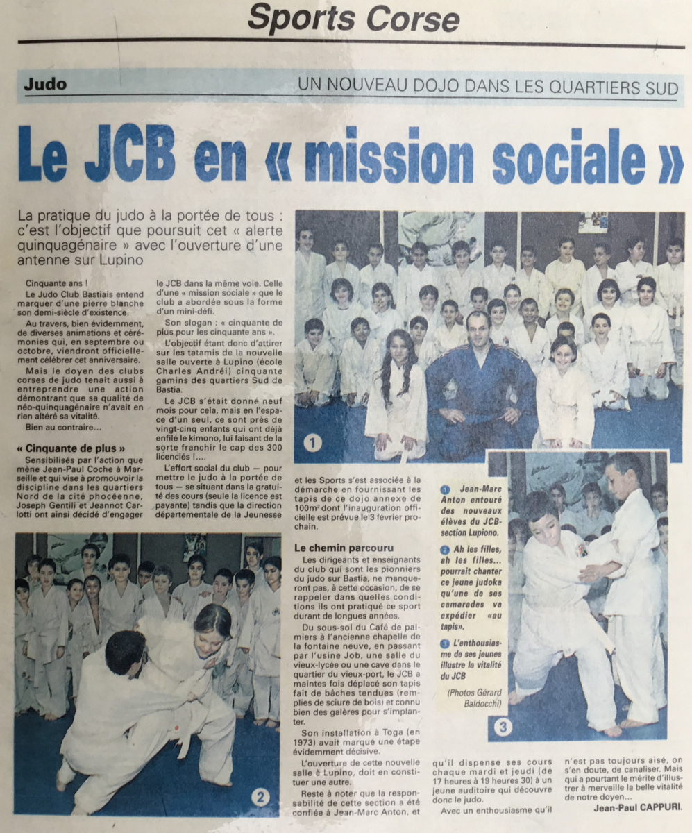 Il faut savoir que nous avons été le premier club à intégrer le programme Temps Libre de la municipalité et de la CAF ce qui nous a permis d’être subventionnés pour enseigner le Judo gratuitement aux enfants des quartiers sud sans prise de licences. Mais les meilleurs éléments étaient licenciés au dojo de Toga et pouvaient participer aux compétitions.