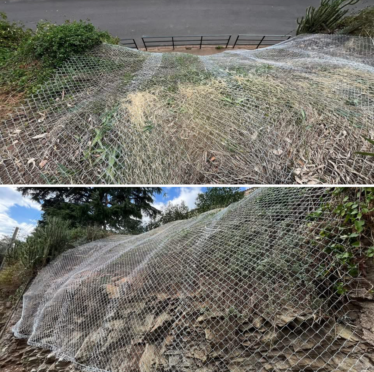 Suite à la mise en demeure de la municipalité j’ai dû faire poser en urgence du grillage sur le talus surplombant le trottoir menant au dojo pour éviter les chutes de pierres, comme cela s’était produit après l’orage 👍🥋